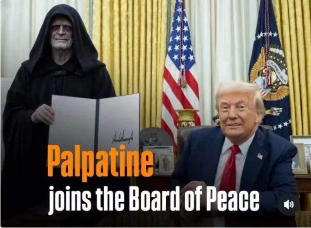Though the Board was originally conceived up as part of the reconstruction/looting of Gaza, it seems a far greater construct now,; an entirely new international body. However its purpose is very different from all others. It is, as explicitly designed, a body to allow its chairman to have total control over tens, maybe hundreds of billions of dollars. Here is an article laying out its structure. In a nutshell, the chairman rules and everyone else pays. Here are some of my favorite bits from the founding charter. And remember, that Donald Trump is the chairman.