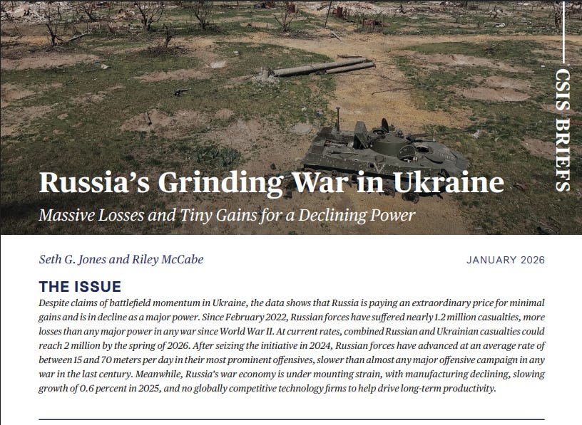 Now the weekend update. First story will look at the latest report issued by the Center for Strategic and International Studies (CSIS) on the Russian performance in the Russo-Ukraine War. It is an extraordinarily important counter to the pro-Russian narrative you see many other places, including from the White House.